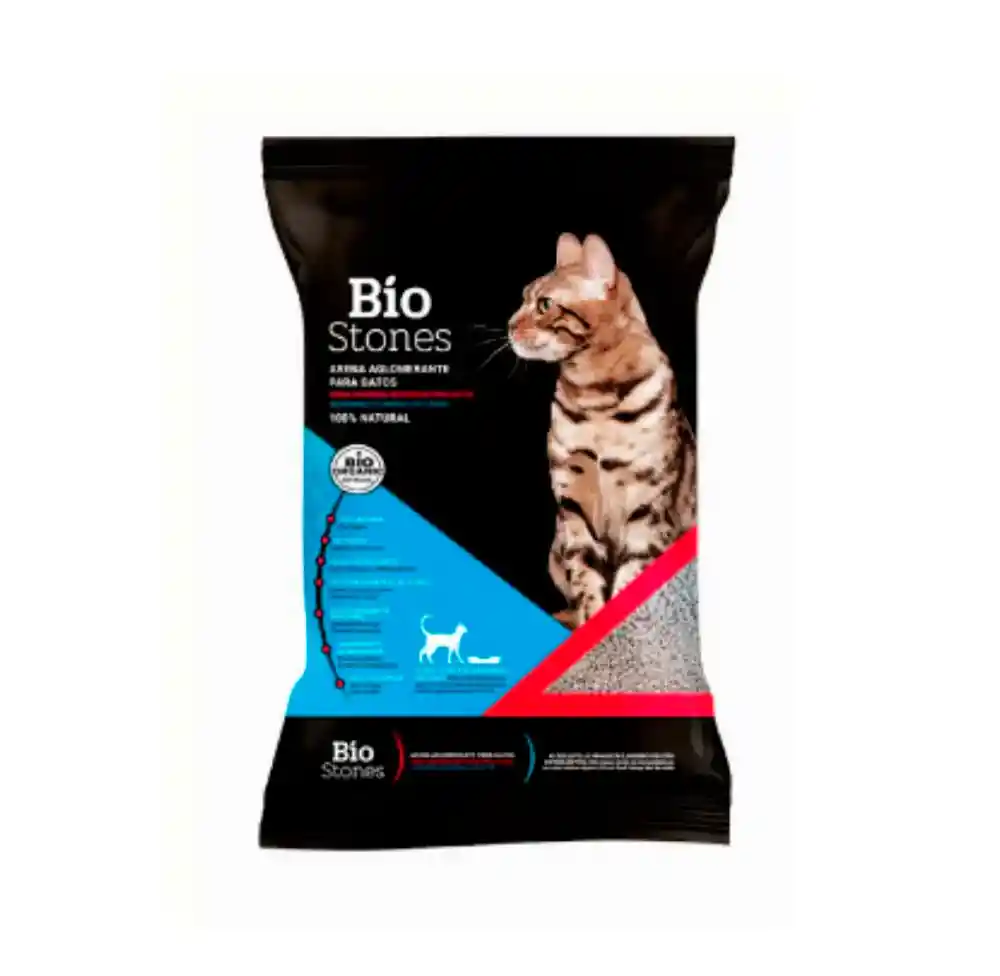 La arena para Bio Stones está hecha a base de bentonita sodica, se caracteriza por su capacidad absorbente y su capacidad para controlar los malos olores.