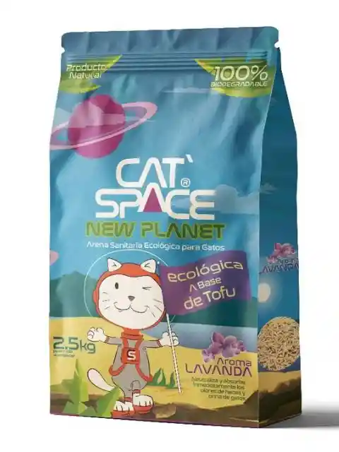 Cat SPACE New Planet Arena ecológica hecha a base de tofu. Controla efectivamente los olores, tiene excelente compactación y tiene baja generación de polvo. 100% biodegradable, puedes tirar los desechos en el inodoro
