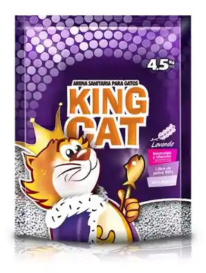Arena Sanitaria King Cat lavanda Arena super aglomerante de fina granulación, 0% de humedad, 100% natural y libre de polvo en un 99%. Neutraliza y absorbe rápidamente los olores de las heces y la orina de los gatos con su esencia a lavanda y controla la humedad de las mismas.