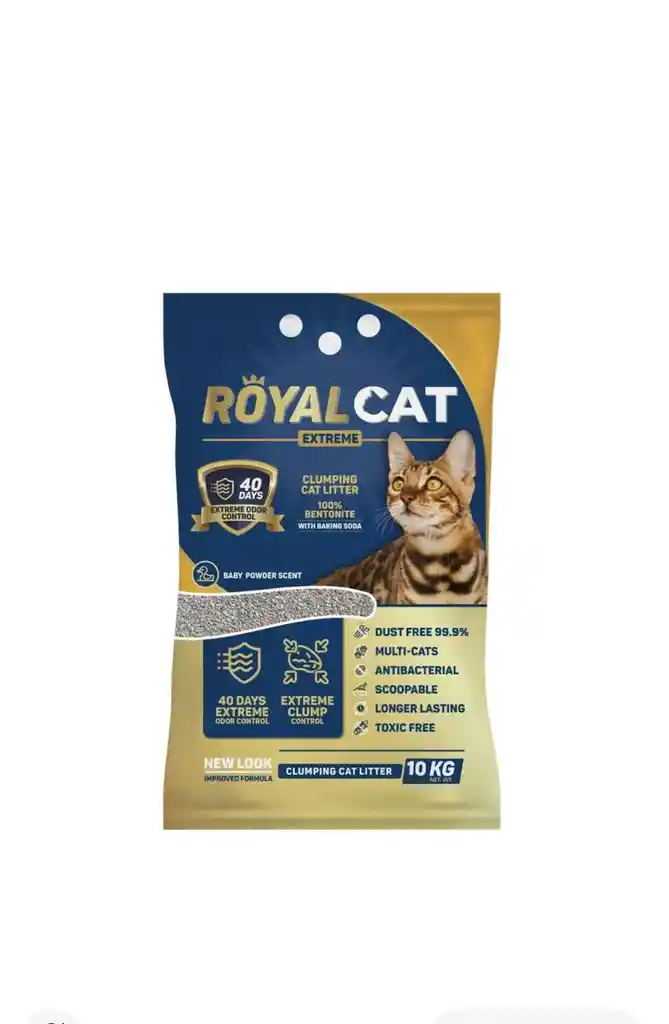 La arena para gatos Royal Cat con aroma natural a talco de bebe es una arena con novedosa fórmula elaborada para cuidar la limpieza de tu gato cada vez que tenga que ir al baño y mantener la frescura y limpieza del ambiente de tu hogar. Es una arena con fuerte acción absorbente que eliminará la húmedad y los malos olores de los deshechos