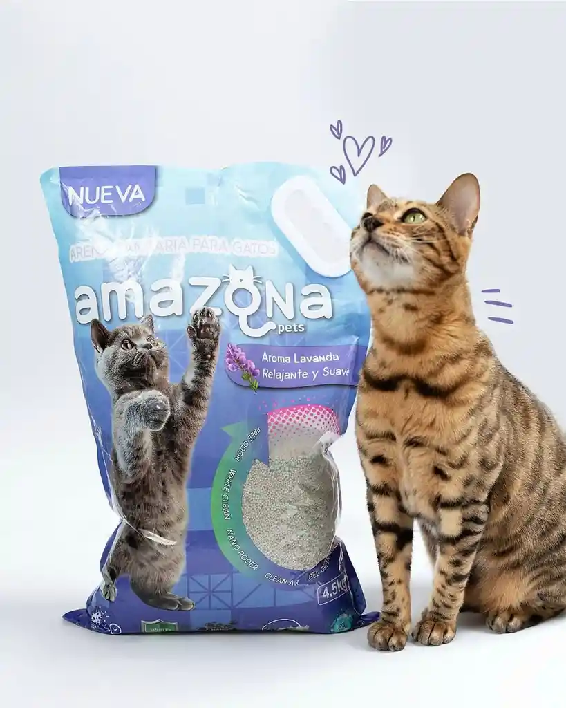 Arena sanitaria para gatos aroma a Lavanda. Tamaño 4,5 Kg. No genera polvo. Tecnología que bloquea los olores. Previene las bacterias. Nano poder para mayor aglomeración. Con microcápsulas 100 veces más absorbentes.