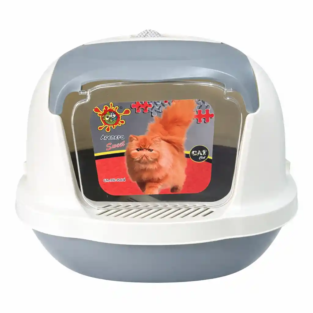 Arenera cubierta diseñada para brindar mayor higiene y comodidad tanto para el gato como para el hogar. Su estructura cerrada ayuda a reducir la dispersión de arena y controlar los olores, proporcionando un espacio más limpio y privado para la mascota. Cuenta con una puerta frontal transparente que facilita el acceso del gato y ayuda a mantener la arena dentro del arenero. Fabricada en plástico resistente y fácil de limpiar, incorpora ranuras de ventilación que permiten una mejor circulación de aire. Incluye una pala recolectora práctica para retirar fácilmente los desechos sólidos y la arena húmeda, facilitando el mantenimiento diario. Su diseño amplio y ergonómico la hace adecuada para gatos de distintos tamaños, mientras que su estructura desmontable permite una limpieza rápida y eficiente. Ideal para mantener el área de higiene del gato organizada y libre de suciedad.