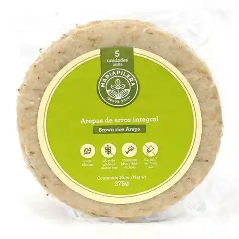 Arepa Mariapilera NATURAL: Arroz integral, aceite de olivaEl arroz es un alimento indispensable para el aporte de energía al organismo, sus propiedades mas importantes están enfocadas a la protección contra el cáncer. Induce la pérdida de peso por ser el cereal de menos aporte en carbohidratos y grasas, controla la presión arterial, previene el estreñimiento y es libre de gluten.