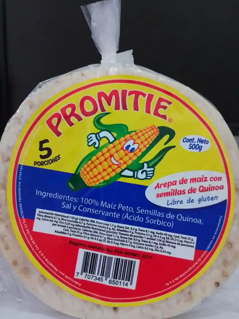 Arepas 100% de maíz peto amasadas con quinoa, con sal. Libres de Gluten