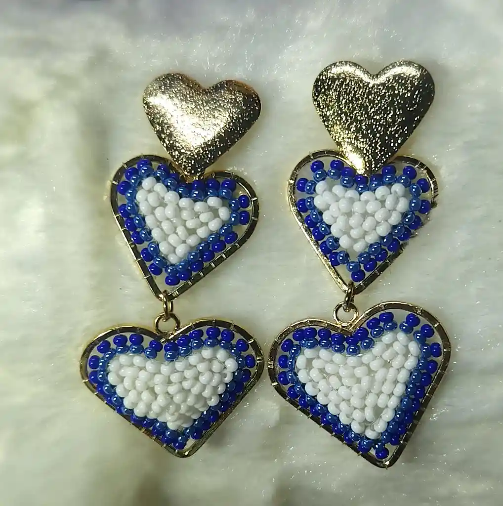 ARESTES ARTESANALES CON RODIO - FORMA DE CORAZON AZUL CON BLANCO
