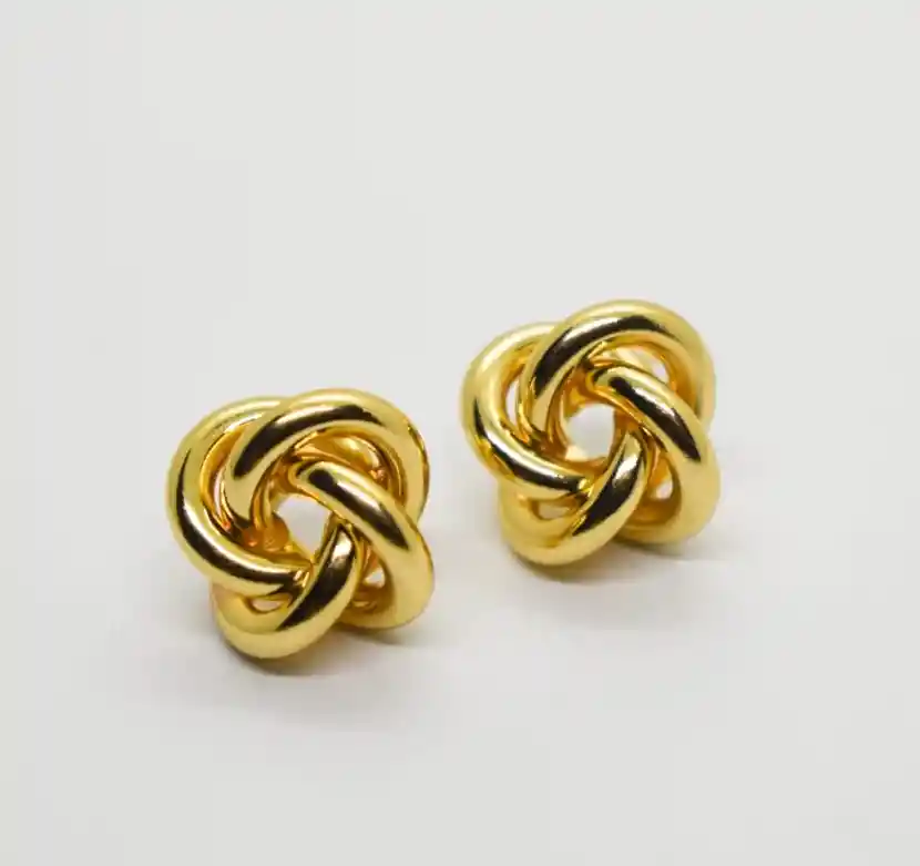 HERMOSOS ARETES DORADOS NUDOS, ELABORADOS EN ORO GOLFIELD, PERFECTO PARA COMBINAR TU OUTFIT, LUCIRÁS HERMOSA, ÚNICA Y A LA MODA