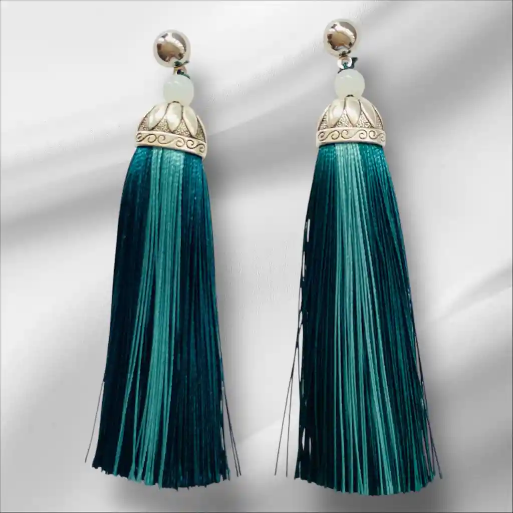 Arete largo flecos verde primavera