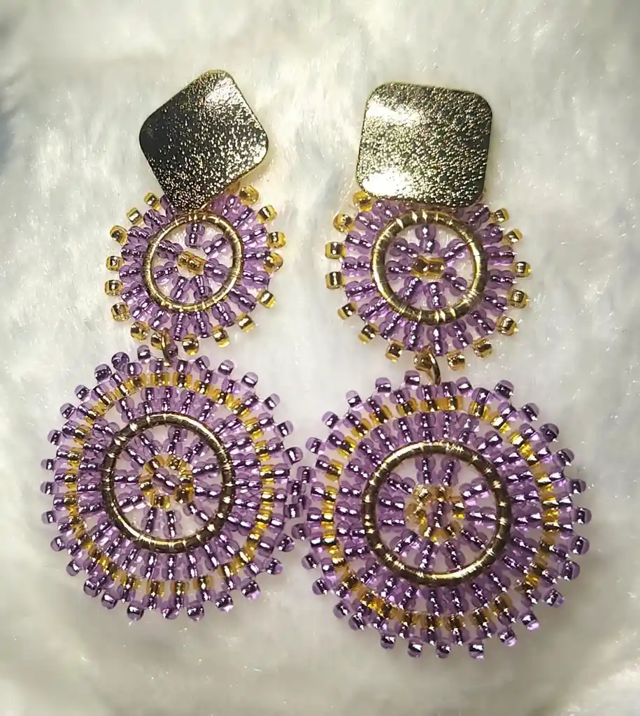 ARETES ARTESANALES CON RODIO - LILA CON DORADO