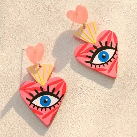 Aretes grandes, coloridos y en forma de corazón