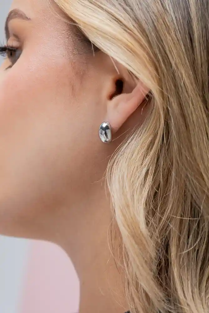 Aretes elaborados en Acero plateado. Incluye: 1 par de aretes plateados lisos. Recibe con tu compra una FLORIBAG gratis, para que guardes por separado tus accesorios. Hecho a mano en Colombia. * Las imágenes pueden estar ambientadas con otros productos que se venden por separado