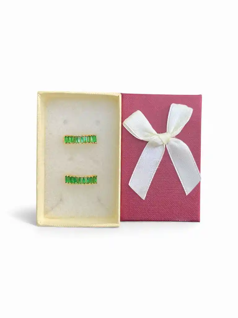 Aretes Tipo Candonga Con Diseño De Piedras Verdes Con Dorado En Rodio