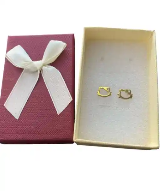 ARETES TIPO TOPO CON DISEÑO DE HELLO KITTY EN ACERO