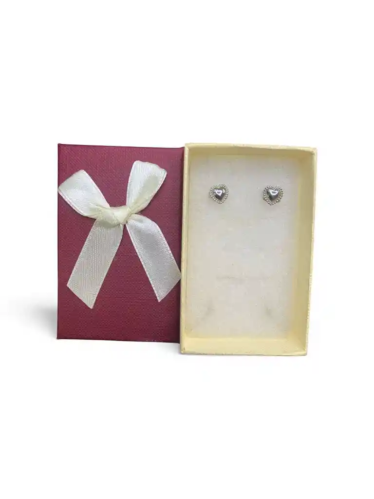 Aretes Tipo Topo Diseño De Corazon Pequeño Color Plateado De Rodio