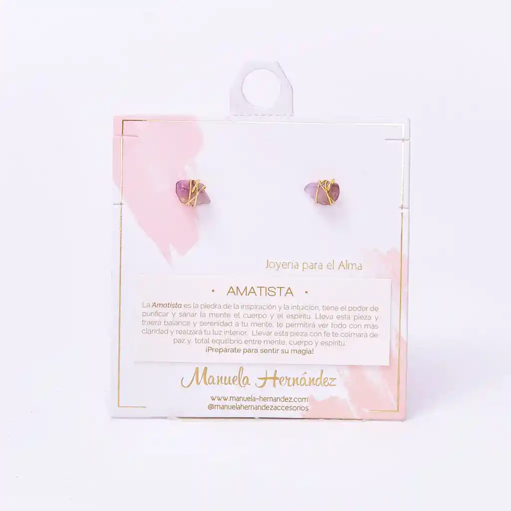 Apliques Dorados con Baño de Oro 18k. Elaborado con Amatista Natural. Pin antialérgico.