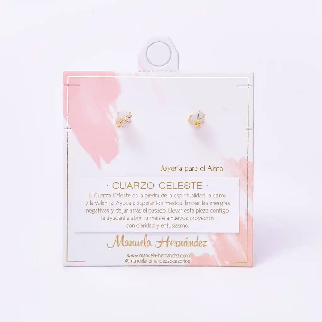 Apliques Dorados con Baño de Oro 18k. Elaborado con Cuarzo Celeste Natural. Pin antialérgico.
