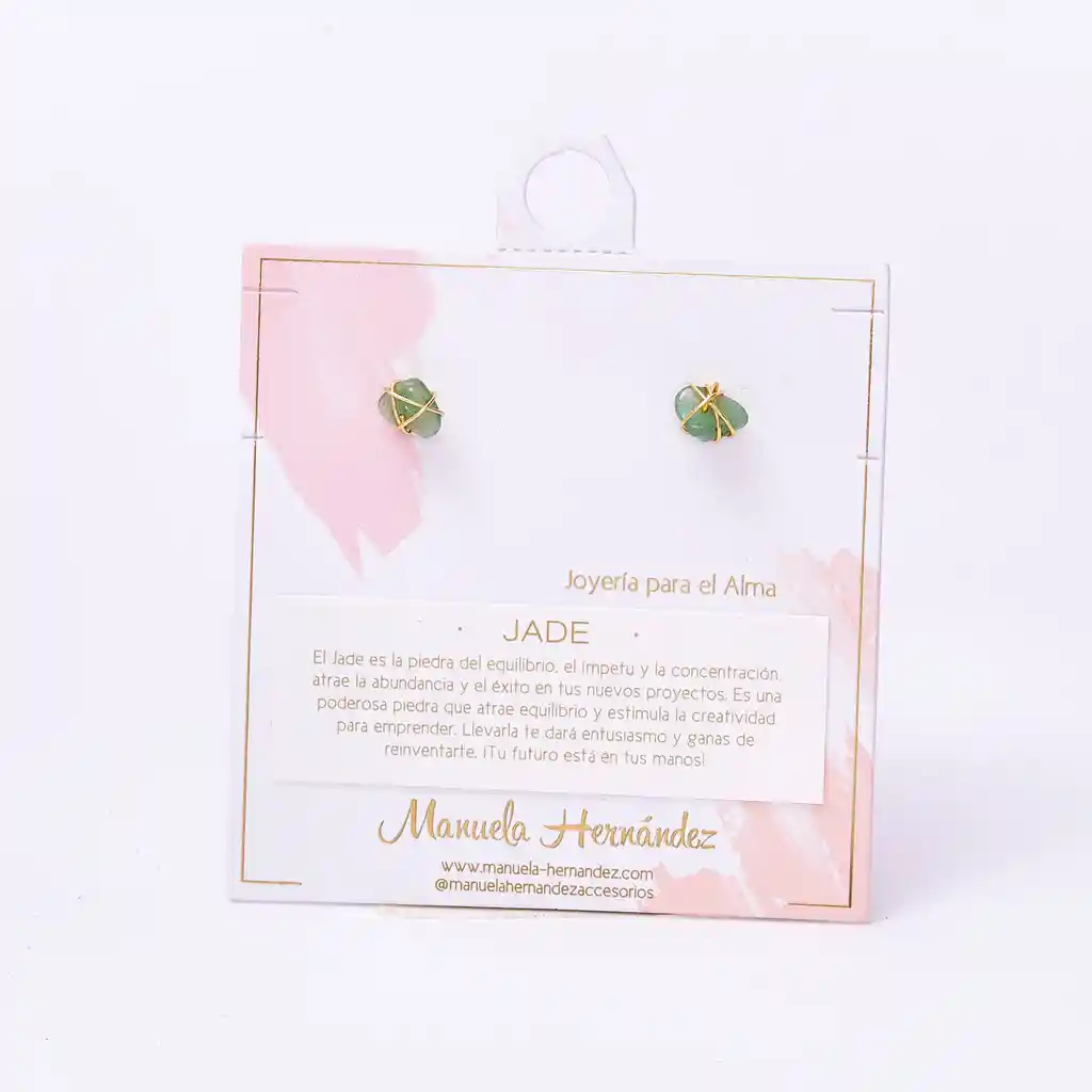 Apliques Dorados con Baño de Oro 18k. Elaborado con Cuarzo Verde Natural. Pin antialérgico.