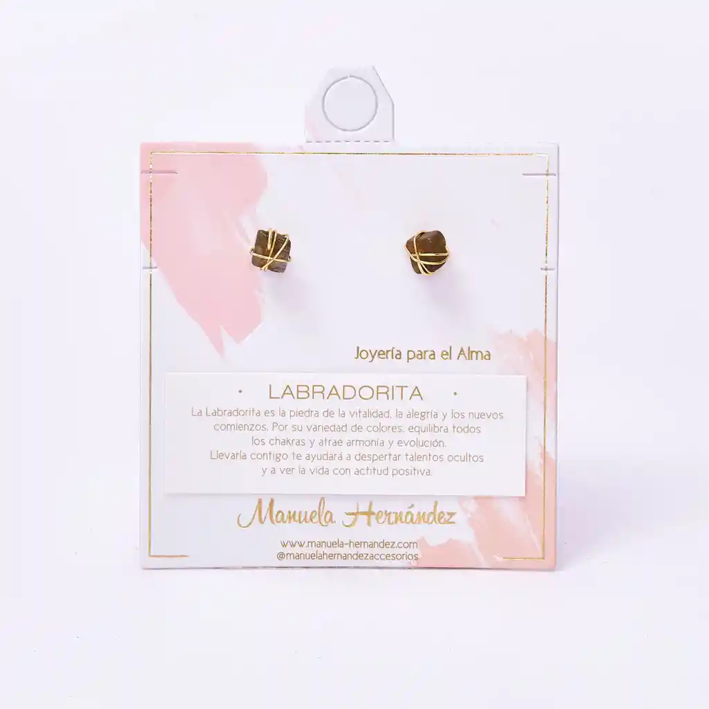 Apliques Dorados con Baño de Oro 18k. Elaborado con Labradorita Natural. Pin antialérgico.