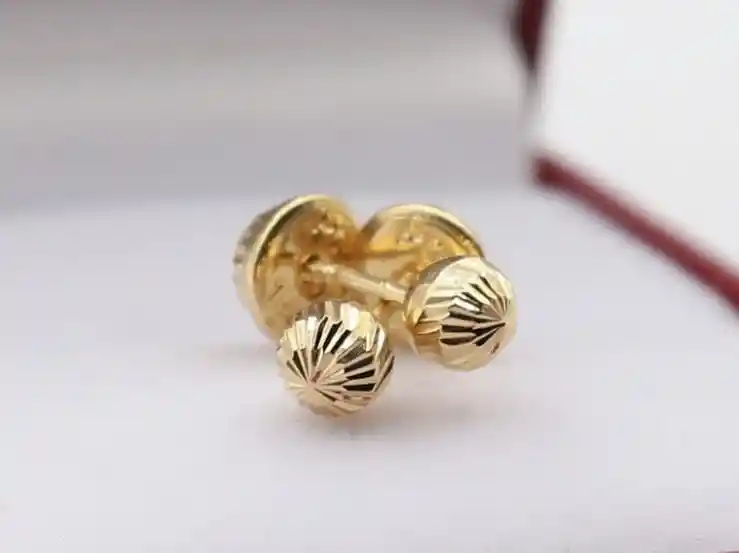 ARETES TOPOS BOLA DIAMANTADA #4MM PESO 0,8GM, ORO 18 KILATES Detalles de la joya: •Calidad: Oro 18K Garantizado •Color: Oro Amarillo •Peso: 0,8gr •Grosor: 4mm •Oro Nacional