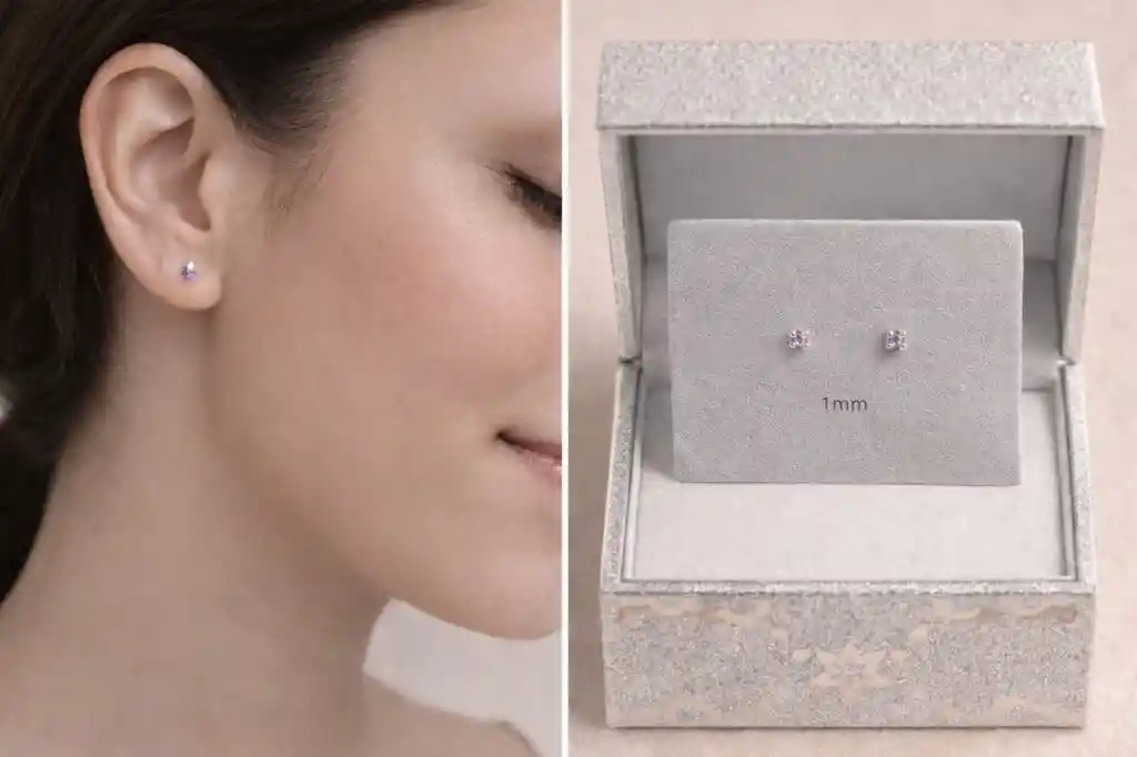 ARETES: TOPOS EN CIRCON ROSADODE 1 MM PLATA 925 Topos en plata – Circón lila Topos elaborados en plata, diseño redondo circón lila con acabado brillante. Medidas: 1MM Presentados en modelo ideales para uso diario o regalo.