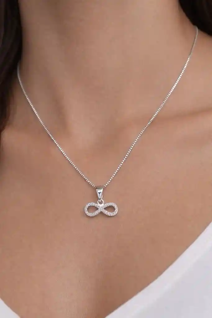 ARETES:CADENA Y DIJE INFINITO CIRCON BLANCO PLATA 925 Significado detallado del infinito en plata 925: Amor y Conexión Eterna: El símbolo (∞), también conocido como lemniscata, representa la ausencia de un principio o final, simbolizando un compromiso duradero. Amistad y Lazos Duraderos: Ideal para regalar a amigos o familiares como símbolo de una relación inquebrantable que no termina. Metas sin Límites: Más allá de las relaciones, puede representar la superación personal, la constancia y sueños que no tienen límites. La Plata 925: Representa un material de alta calidad, duradero y brillante, ideal para el uso diario o para regalar en ocasiones especiales, asegurando que la joya perdure tanto como el sentimiento que simboliza. Esta joya es un recordatorio constante de los lazos inquebrantables y promesas que trascienden el tiempo.