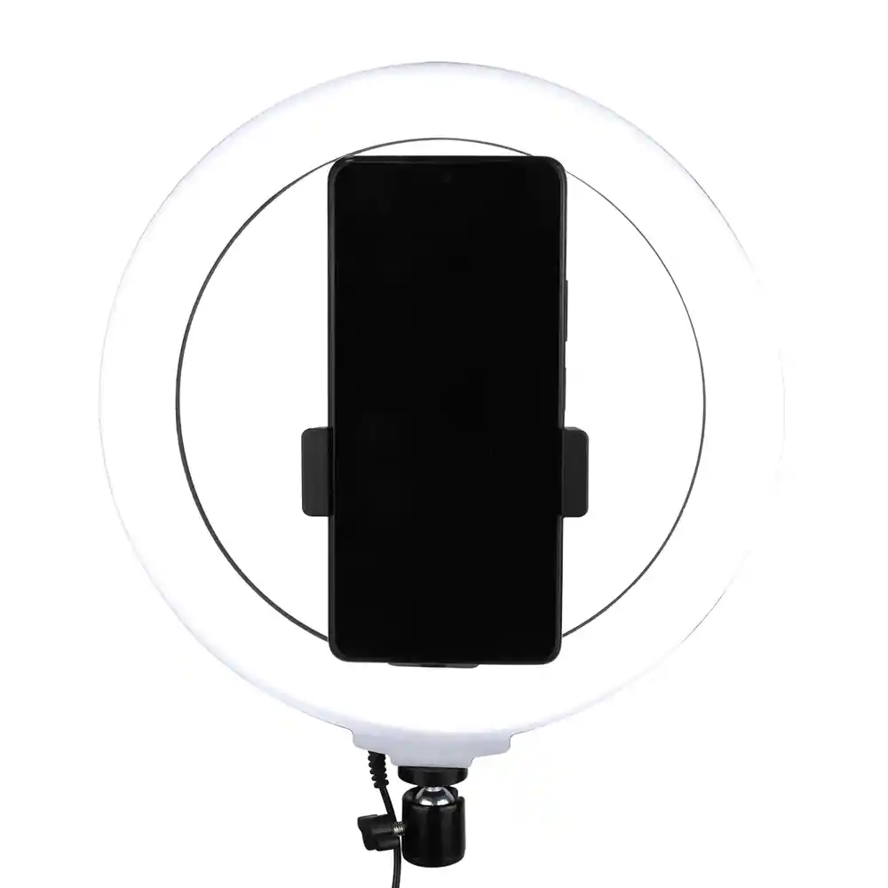 · Alimentación USB · 30W · Tamaño aro 26 cms · Soporte 360 para celular · Luces LED · Incluye trípode 2.10mts, control remoto y accesorios
