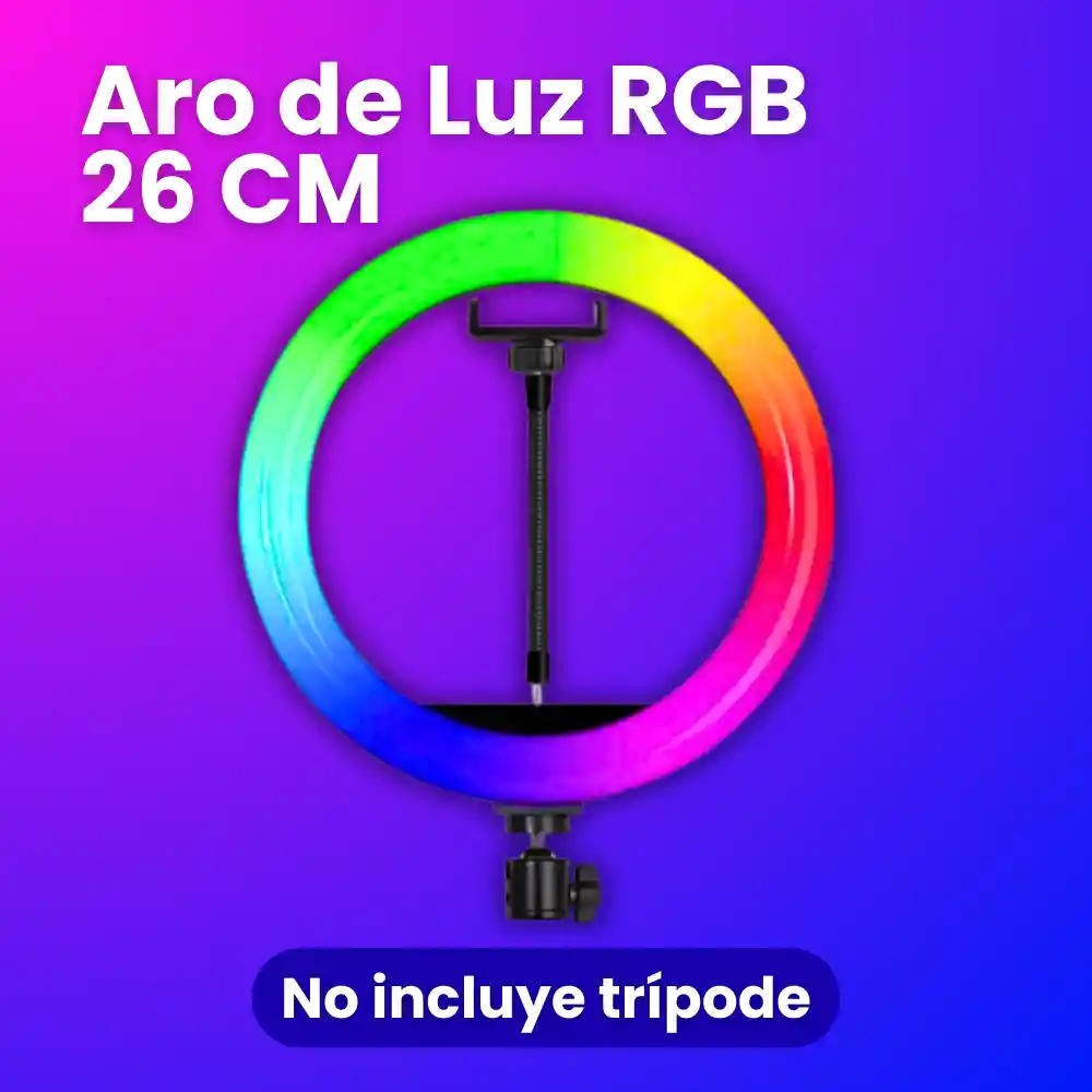 Iluminación versátil para creadores, emprendedores, transmisiones en vivo, videollamadas y fotografía básica. Incluye luz RGB, brazo flexible, soporte para celular y control integrado. Conexión USB. ⚠️ No incluye trípode. 📌 Descripción Aro de luz LED RGB modelo MJ26 diseñado para mejorar la iluminación en grabaciones, transmisiones, clases virtuales y fotografía personal. Ofrece luz blanca regulable y efectos multicolor mediante control integrado. Cuenta con brazo flexible, soporte para celular y conexión USB, lo que permite usarlo fácilmente en escritorios, mesas o soportes compatibles. Ideal para quienes buscan mejorar su imagen sin equipos complejos. ✨ Características • Iluminación RGB multicolor y luz blanca • Intensidad regulable • Modos de iluminación • Control integrado en cable • Soporte para celular ajustable • Brazo flexible orientable • Alimentación por USB • Luz suave sin deslumbramiento 📦 Incluye • Aro de luz LED RGB • Soporte para celular • Brazo flexible • Abrazadera de fijación • Control USB integrado • Cable USB ❌ No incluye trípode ⚙️ Especificaciones Técnicas • Modelo: MJ26 • Tipo: Aro LED RGB • Alimentación: USB • Modos: Luz blanca + RGB • Regulación: Intensidad y modos • Control: Integrado en cable • Soporte: Celular ajustable • Material: Plástico + metal • Uso: Interior ⚠️ Importante • No incluye trípode • No funciona sin alimentación USB • No es equipo profesional de estudio • La intensidad depende del puerto USB utilizado • Los colores pueden variar según pantalla • Uso recomendado en interiores • No sumergible