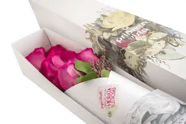 Arreglo de 6 Rosas Con Follaje, Cánulas Con Agua, Empacado en Caja