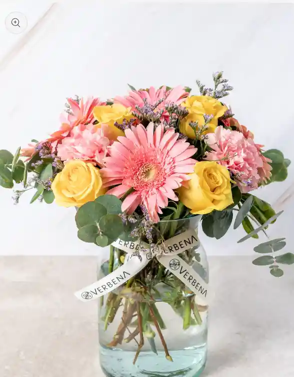 Disfruta de este ramo hermoso que combina flores de colores vibrantes y dulces. La Gerbera rosa, Rosa Amarilla y el Clavel Rosa son una combinación perfecta para demostrar tu afecto. ¡Regala este arreglo floral con Brillo de Sol!