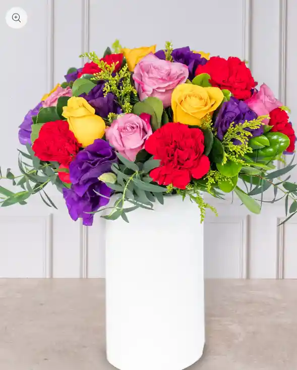Inspirado en los colores cálidos y vibrantes, el ramo Cartagena mezcla la elegancia de la rosa morada, la alegría luminosa de la rosa amarilla, la intensidad del clavel rojo y la delicadeza del lisianthus. Una composición llena de vida, fuerza y romanticismo que evoca callejones floridos, atardeceres dorados y la pasión de una ciudad que nunca deja de inspirar. Perfecto para celebrar amores intensos, amistades que florecen o momentos que merecen quedarse en la memoria.