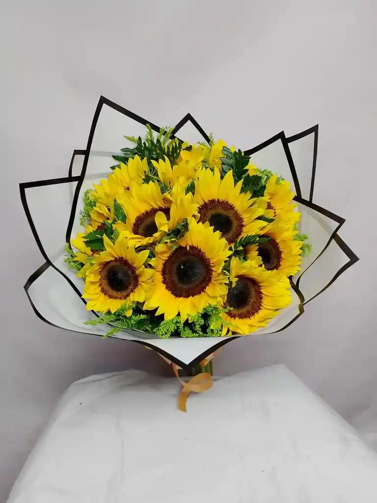 hermoso arreglo de 12 girasoles y follaje y tarjeta personalizada para toda ocasión