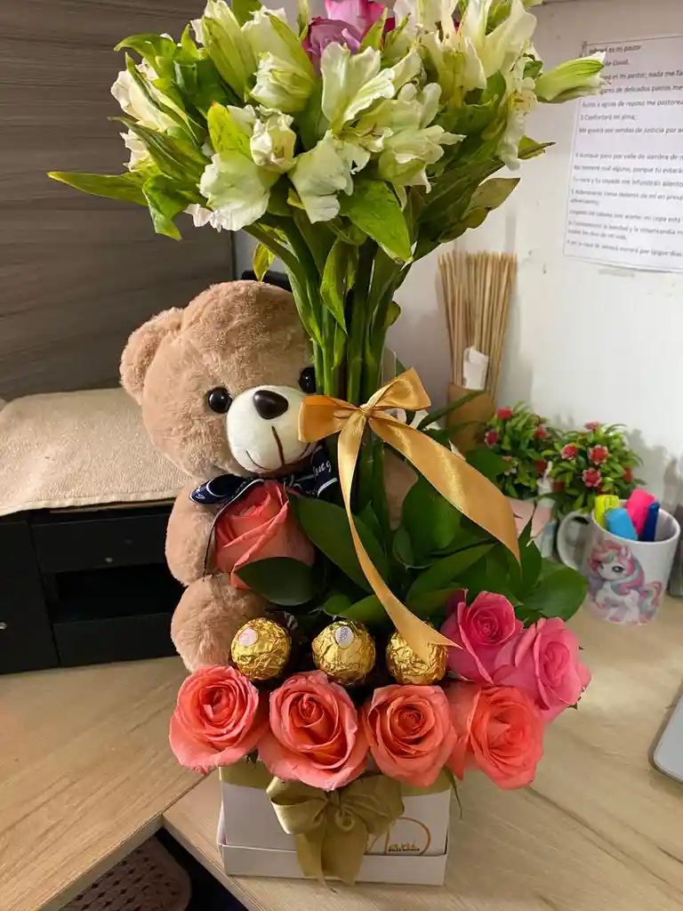 Nota importante: OSO de peche disponible por la tienda, recibe este u otro peluche, color de las rosas disponibles por la tienda.