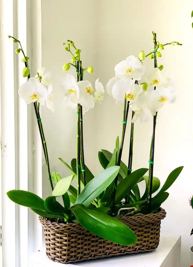 Arreglo de tres orquídeas phalaenopsis grandes de dos varas + maceta jardinera tejida a mano Arreglo de Mini Orquídeas Blancas en Matera Concha – Elegancia Natural para Regalar Sorprende con un arreglo único y sofisticado: un conjunto de mini orquídeas blancas lleno de vida y frescura, sembradas en una matera premium con diseño de concha marina, pieza decorativa que enamora a primera vista. Este arreglo es perfecto para regalar en cumpleaños, aniversarios, agradecimientos o simplemente para alegrar el día de alguien especial. ✔ Orquídeas mini blancas de larga duración y fácil cuidado ✔ Matera en forma de concha, elaborada en cerámica artística ✔ Regalo ideal para amantes de la decoración y la naturaleza ✔ Perfecto para hogares, oficinas o espacios minimalistas ✔ Envío cuidadoso y presentación premium Lleva un detalle elegante, natural y con estilo — un regalo que transmite paz, luz y armonía desde el primer momento.