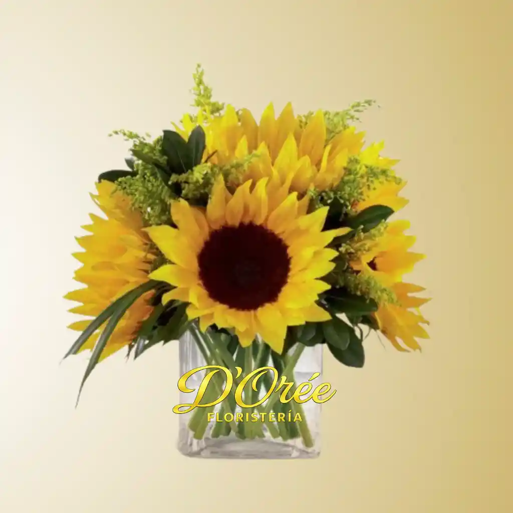 ¡Dale un toque soleado a tu día con nuestro encantador arreglo de 6 girasoles! Este delicado arreglo está compuesto por hermosos girasoles que irradian alegría y energía positiva. Perfecto para iluminar cualquier espacio, este ramo es una muestra de felicidad en su forma más simple. ¡Añade un rayo de sol a tu vida con nuestros vibrantes girasoles pequeños hoy mismo! Compuesto por: - 6 Girasoles - Follaje - Florero Nota.- El color de las flores y modelo del florero puede variar de acuerdo a disponibilidad.