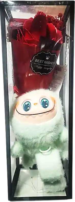 Arreglo Floral Artificial, Peluche Verde Manzana Labubu Brazalete Con Alitas, 14 Cm.