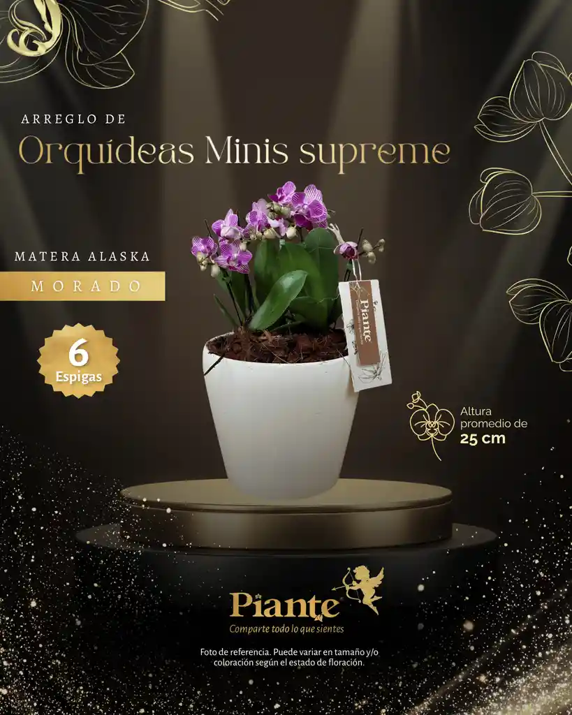 Un detalle con estilo para San Valentín: este arreglo de orquídeas mini combina elegancia y buen gusto, ideal para ambientar salas, oficinas o escritorios con un toque natural y sofisticado. Es un regalo que destaca sin exagerar, transmite intención y sorprende por su belleza, calidad y duración. Es un arreglo de orquídeas en sustrato de coco PIANTE con 6 espigas florales, con altura promedio de 25 cm y duración estimada de 3 a 4 meses según cuidados (son plantas vivas). Incluye nota de cuidados y dedicatoria personalizada, perfecto para una experiencia completa. Matera en cerámica tipo importación, diámetro 18 cm, color taupe. Foto de referencia. Puede variar en tamaño y/o coloración según el estado de floración."