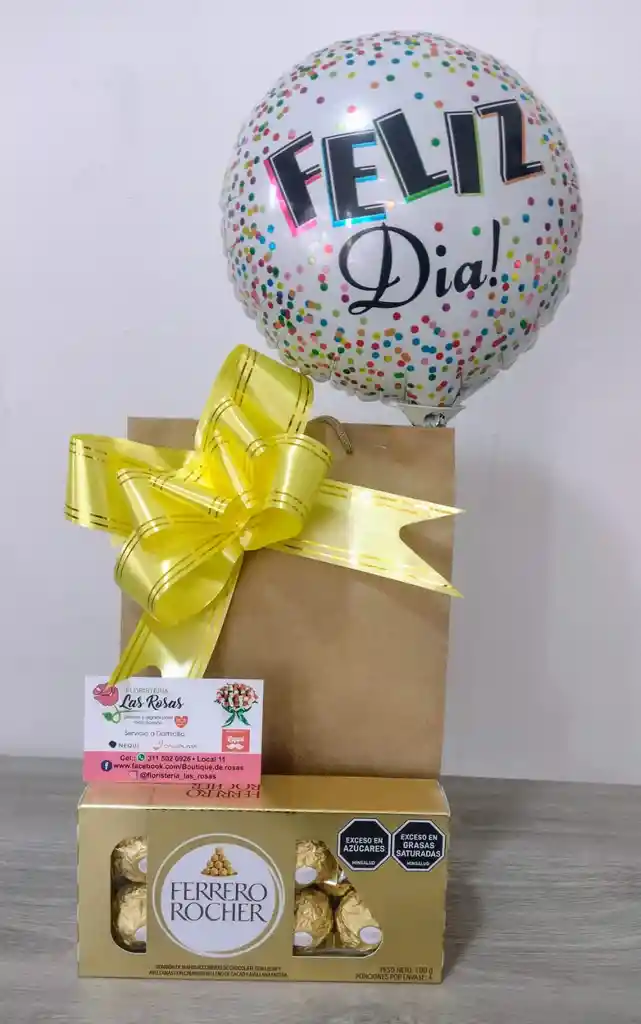 CHOCOLATES FERRERO X 8 BOLSA DE REGALO GLOBO DE FELIZ DIA MOÑO Y TARJETA