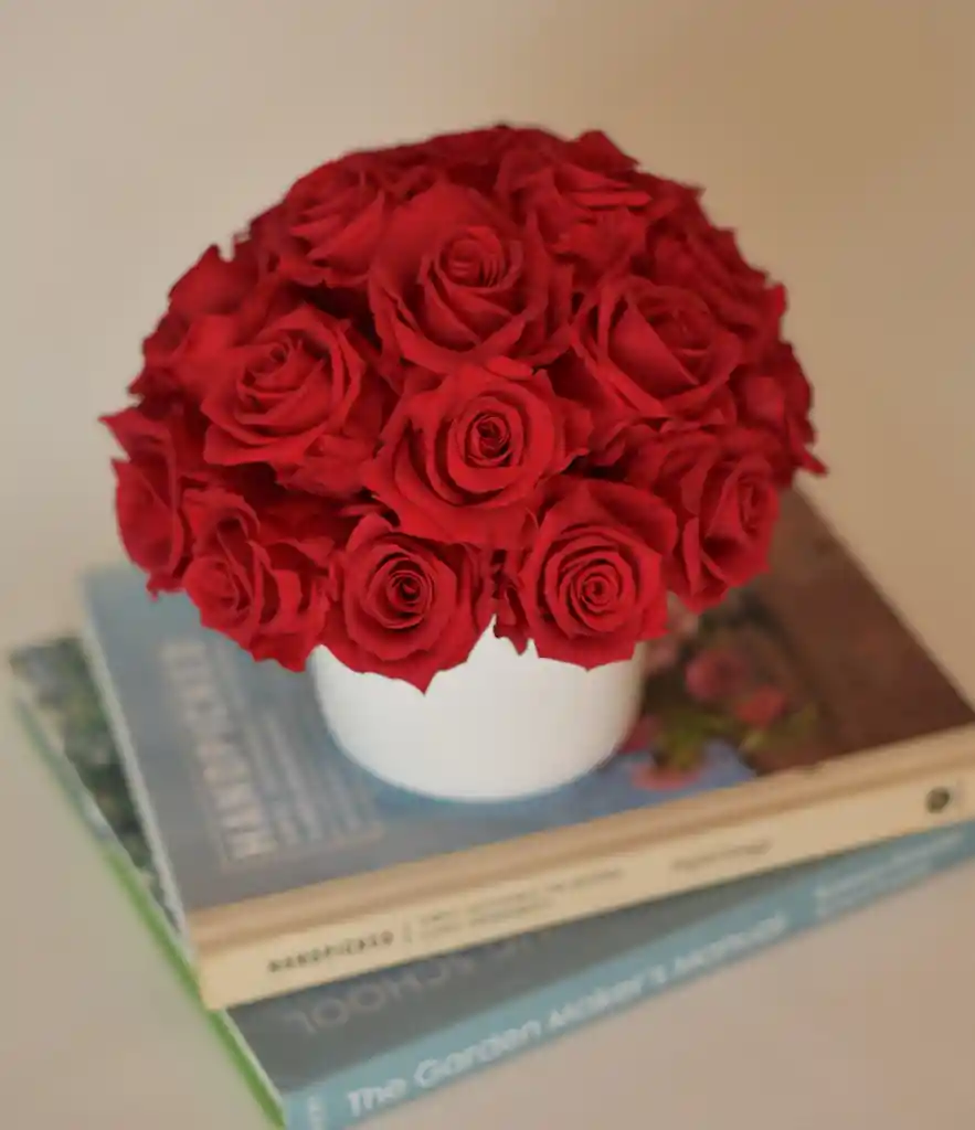 Arreglo floral con rosas x24 en florero de cerámica. Un sueño para enamorar