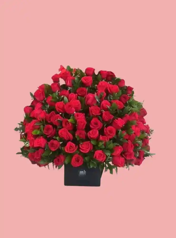El Arreglo Intensa es una obra floral que combina elegancia y pasión en cada detalle. Está diseñado con flores frescas de la más alta calidad, cuidadosamente organizadas para transmitir lujo y sofisticación. Su estilo imponente lo convierte en el centro de atención en cualquier ocasión especial. Componentes del arreglo: 100 rosas (color puede variar) Follaje verde selecto Base cuadrada negra (color puede variar)