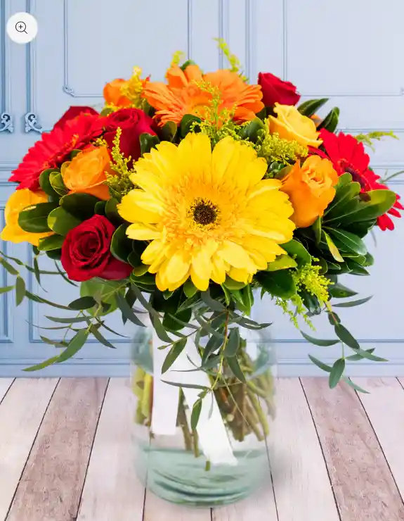 Color, ritmo y pasión en un solo ramo. Rumba es una explosión vibrante de emociones que combina la alegría de la gerbera amarilla, la intensidad de la rosa roja y la calidez de la rosa naranja. Un diseño lleno de energía y movimiento, perfecto para celebrar momentos especiales, levantar el ánimo o decir “estoy pensando en ti” con fuerza y estilo. Ideal para personas apasionadas, espontáneas y llenas de vida.