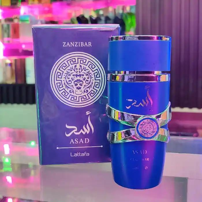 Perfume "ASAD ZANZIBAR LATTAFA PERFUMES" 100% garantizado. Cada perfume viene con el empaque y caja como se muestra en la foto. 1.1 Asad Zanzibar de Lattafa Perfumes es una fragancia de la familia olfativa para Hombres. Las Notas de Salida son lavanda y pimienta negra las Notas de Corazón son Agua de coco, iris y sal las Notas de Fondo son vainilla y incienso.