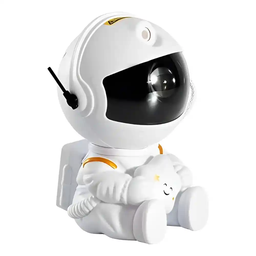 Color: blanco Material: ABS + PC + PVC Entrada de trabajo: 5 V 1 A Potencia del LED: 5 W Longitud de onda del láser: 532 nm Modo de control: Alcance del mando a distancia: 5 metros (mejor distancia) Diseño especial: * Proyecto de astronauta * Ajuste gratuito de 360 grados de cabeza de astronauta * Proyección de cielo estrellado y proyección de galaxias * Astronauta con estrellas en sus manos Mando a distancia: 1. Ocho efectos de proyección 2. Brillo ajustable 3. velocidad ajustable.