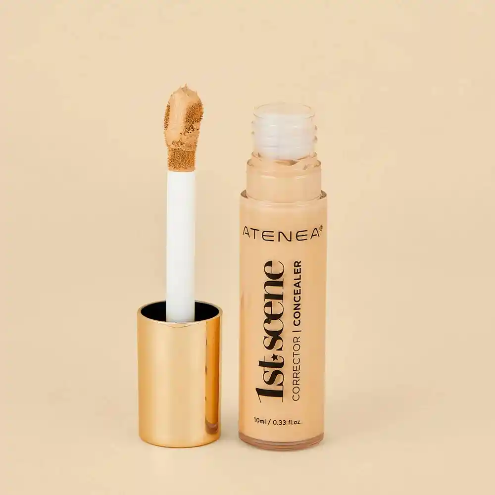 El corrector 1st Scene es de alta cobertura y te ayuda a camuflar tus ojeras, además mantiene esa zona hidratada; Ideal para piel normal, seca o madura, es de acabado luminoso que proporciona un máximo cubrimiento de imperfecciones y manchas . Su fórmula contiene cafeína y ácido hialurónico que ayuda a desinflamar la zona. Viene en 9 tonos y es de larga duración