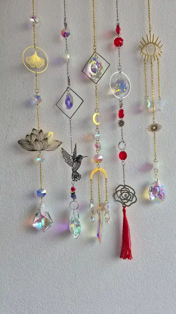 Transforma cualquier habitación en un santuario de paz y color. Nuestro atrapasol está diseñado para capturar la luz natural y descomponerla en cientos de arcoíris bailando por tus paredes. No es solo un adorno, es una experiencia visual que cambia según la hora del día. Cristales: Tallados con precisión para maximizar el brillo y la refracción de la luz. Energía Positiva: Según el Feng Shui, los cristales ayudan a armonizar la energía del hogar, aportando calma y alegría. Diseño Artesanal: Un detalle elegante y delicado que complementa cualquier estilo de decoración, desde el minimalista hasta el bohemio. 📍 Ubicación Ideal Para obtener el mejor efecto, cuélgalo en una ventana donde reciba luz solar directa (orientación Este para los arcoíris de la mañana o Oeste para los del atardecer). También puedes usarlo en balcones techados o jardines de invierno. 🎁 El Regalo Perfecto Es el detalle ideal para: Inauguración de casas, Regalos de cumpleaños con intención.,, Amantes de la meditación, el yoga y la decoración holística. EN EL CHAT INDICANOS CUAL DISEÑO ELEGISTE, COLIBRÍ, FLOR, LUNA, ROSA, O EL OJO