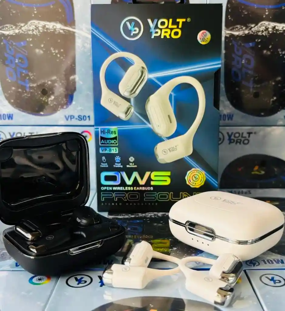 Disfruta de tu música Con los VOLT PRO OWS tendrás una experiencia única gracias a su Hi-Res Audio conexión Bluetooth 5.3 diseño ergonómico que se ajusta perfecto a tu estilo de vida. ✅ Sonido envolvente y nítido ✅ Control táctil para manejar tu música fácilmente ✅ Head Tracking para una experiencia inteligente ✅ Manos libres estéreo para llamadas claras ✅ Diseño cómodo y resistente para uso diario