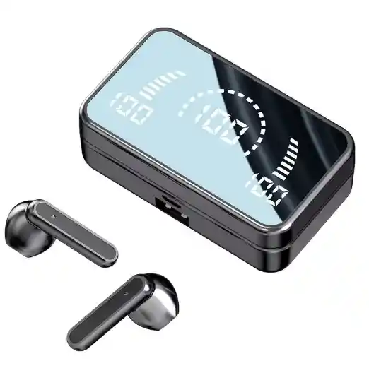 AURICULARES LED INALÁMBRICOS CON CAJA DE CARGA NEGRO
