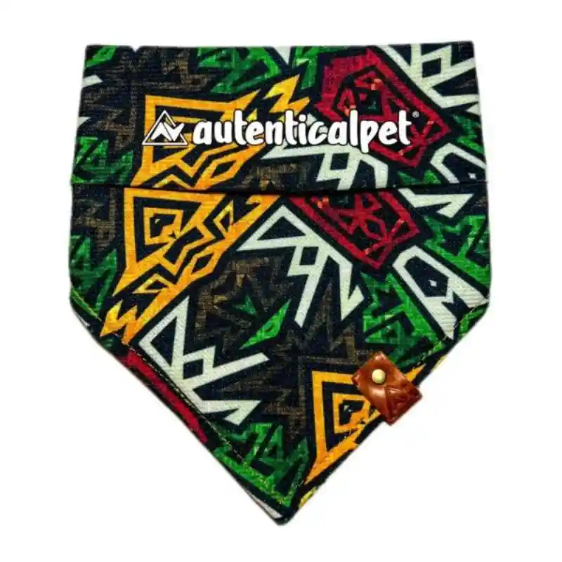 Pañoleta en paño poliester con diseño étnico africano para gatos y perros de razas pequeñas de cualquier edad. Esta pañoleta cuenta con detalles en cuero y broches de seguridad para ajuste y evitar pérdida. Muy cómoda y de alta calidad. Tamaño de la mascota: Pequeño. Etapa de la vida: Todas las Edades.