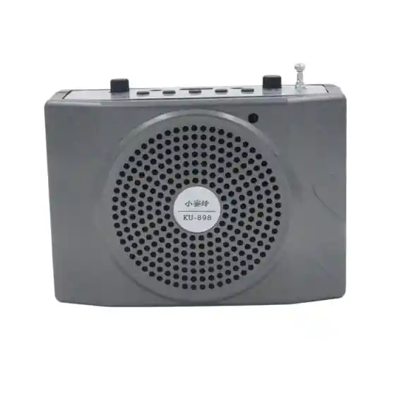 Altavoz KU-898: Potencia y Versatilidad para Todas Tus Necesidades El Altavoz KU-898 es el aliado perfecto para amplificar tu voz y reproducir música con calidad excepcional. Diseñado para profesores, guías turísticos, entrenadores y cualquier persona que necesite ser escuchada con claridad. Características destacadas: Sonido nítido y potente: Amplifica tu voz con claridad, incluso en espacios ruidosos. Respuesta de frecuencia de 100Hz a 20kHz para un audio equilibrado y agradable. Opciones de conectividad: Compatible con tarjetas TF y USB para reproducir música en formato MP3. Radio FM integrada para mayor versatilidad. Diseño portátil y cómodo: Ligero y compacto, ideal para usar durante largos períodos sin esfuerzo. Pantalla digital que facilita el uso y muestra información importante. Micrófono incorporado: Captura precisa de la voz, eliminando la necesidad de micrófonos externos. NOTA: Garantía de 30 días por desperfecto de fábrica, no daños humanos.