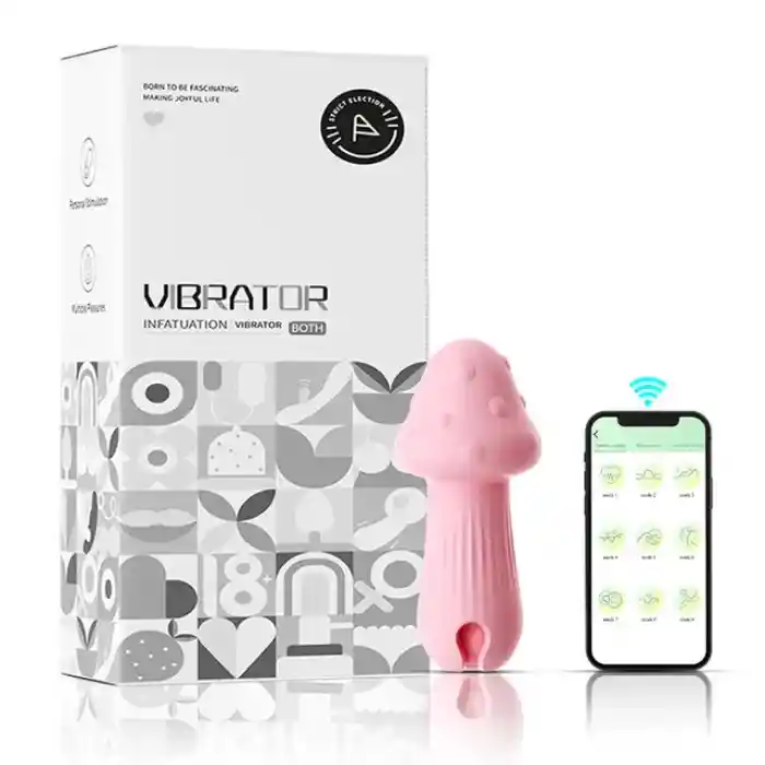 Consolador vibrador con forma de hongo y Bluetooth para mujer, estimulador de clítoris y pezón, mini huevo vibrador para masturbación femenina. Largo 28 cm Diámetro 7 cm Material : silicona 10 frecuencias de vibración