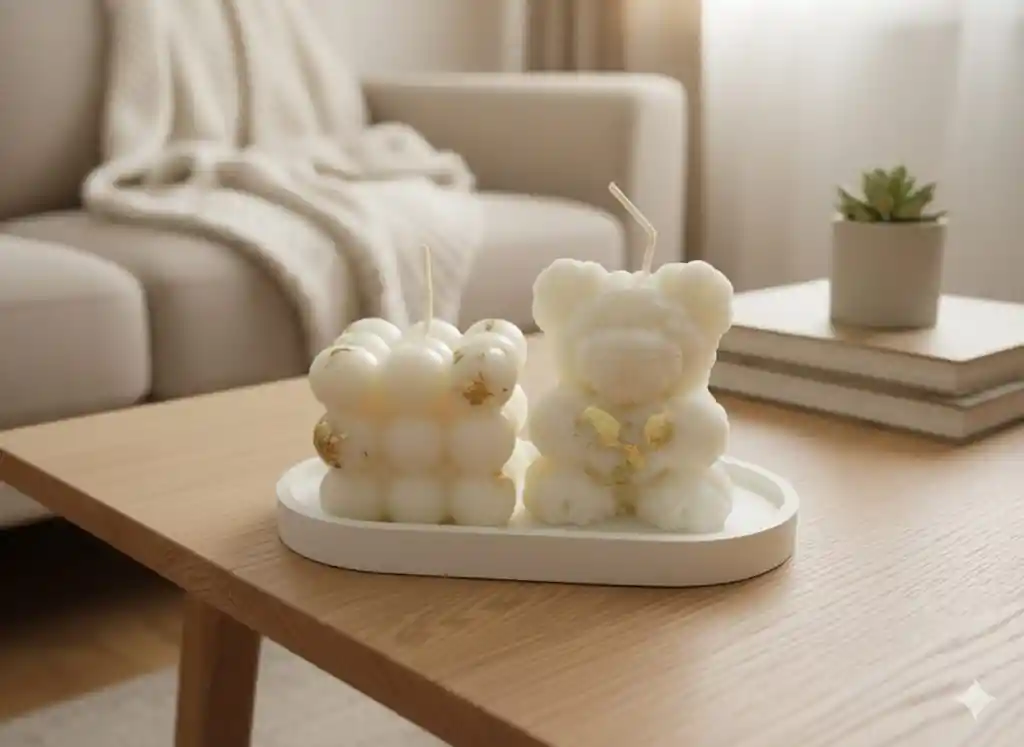 Bandeja, vela rosas en oso, vela cubo Material bandeja: concreto Material velas, cera de soya aromatica
