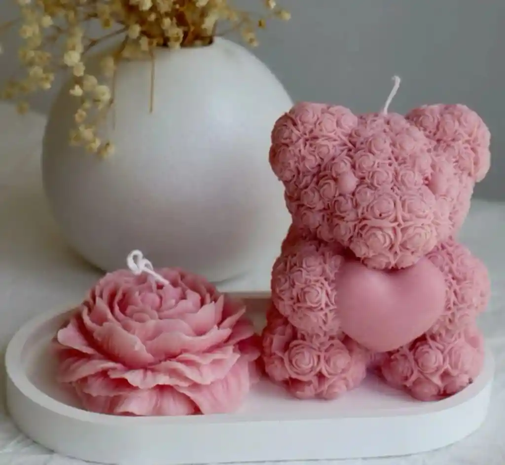 Bandeja, vela rosas en oso, vela flor peonia Cera de soya alta calidad Bandeja en concreto resistente